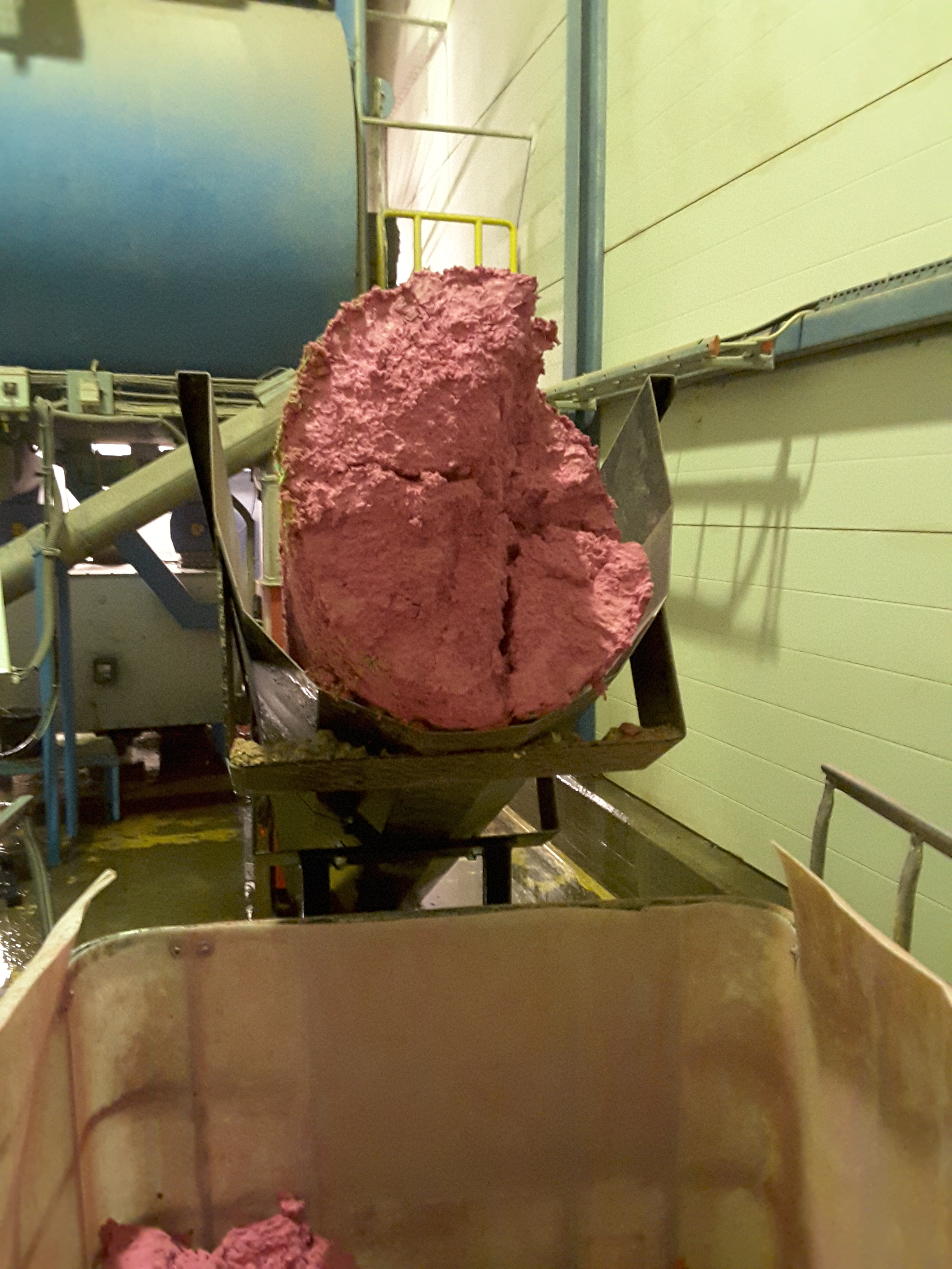 La RUNI SK370 se instaló debajo de su sistema de extracción para compactar el polvo antes de que llegue al contenedor de residuos. La ventaja de la compactadora de tornillo RUNI es la operación continua con arranque automático, lo cual hace que no es necesario tener a un operador al lado de la máquina. También que la máquina necesita ser hermética, para evitar que el polvo vuela para todos lados, ya que la fibra liviana se destruye en el proceso.